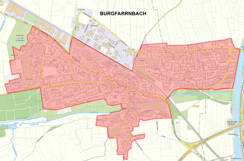 Das Gebiet umfasst den ganzen Ortsteil Burgfarrnbach vom RMD-Kanal bis zur Landkreisgrenze.